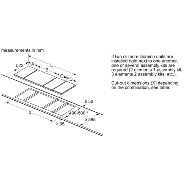 Required installation dimensions (H x W x D): 39 x 288 x 522 mm
