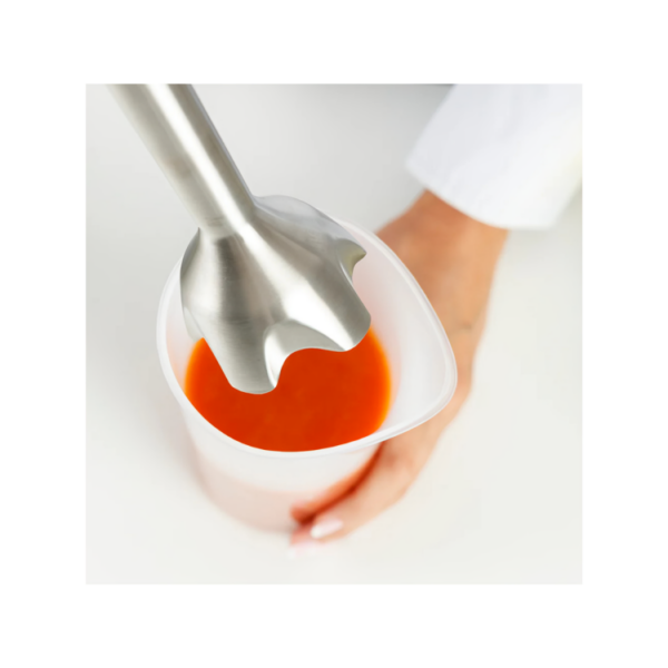 Includes a robust stainless steel shaft and a 700 ml measuring cup—both BPA-free and dishwasher-safe. The metal whisk is perfect for emulsifying, whipping, or preparing sauces with a professional finish.