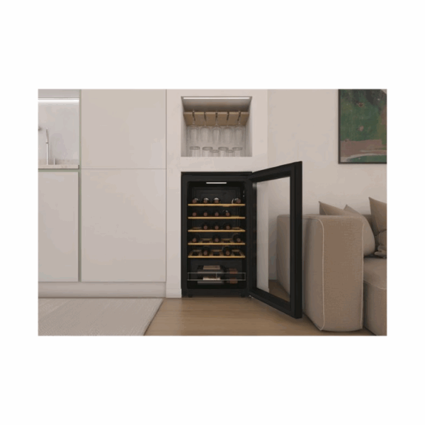 The wine cellar features Wi-Fi connectivity via the hOn app. Easily set the ideal temperature remotely from your smartphone and choose from specialized programs for different types of wine.