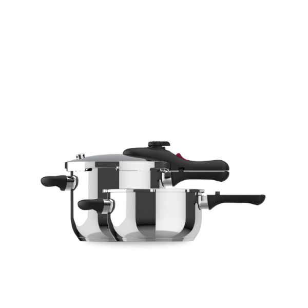 - Triple safety system: 1 pressure valve, 1 overpressure valve, and auto-lock handle