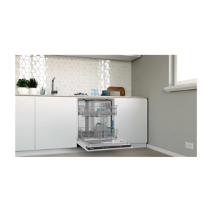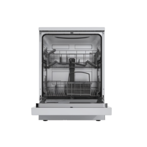Dishwasher with a 14-set capacity and residual drying system. Universal motor with energy efficiency class E and a maximum noise level of 49 dB.