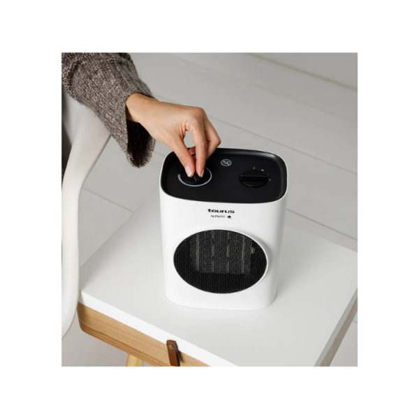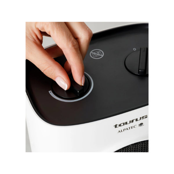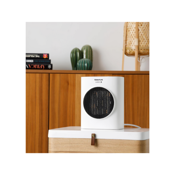 The Tropicano 7C ceramic heater by Taurus delivers 1500W of power and PTC technology for fast and efficient heating. With an adjustable thermostat, two heat settings, and a fan function, it adapts to any season. Its compact and efficient design makes it perfect for rooms up to 20m². Additionally, it features an anti-tip system and overheating protection for safe, worry-free use.