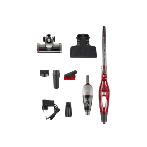 The cordless stick vacuum Unlimited 29.0 Lithium by Taurus offers 29.6V of power and up to 55 minutes of runtime. With a 2-in-1 design, it works as both a floor and handheld vacuum cleaner. It includes a Turbo Brush with LED lighting, cyclonic filtration, and a removable 0.7L dust container. Its parking position, foldable handle, and charging base ensure practicality. Perfect for cleaning all types of surfaces, furniture, and hard-to-reach corners quickly and efficiently.